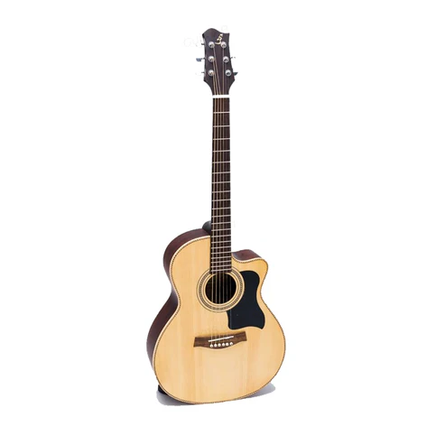 Phiên bản T400 còn được trang bị phần cutaway (khuyết), giúp bạn dễ dàng tiếp cận các nốt cao không cần phải với tay quá xa. Nhìn tổng thể, cây đàn mang vẻ ngoài trẻ trung, hiện đại, rất phù hợp với các bạn trẻ yêu thích sự năng động nhưng vẫn muốn giữ chất âm truyền thống của guitar gỗ.