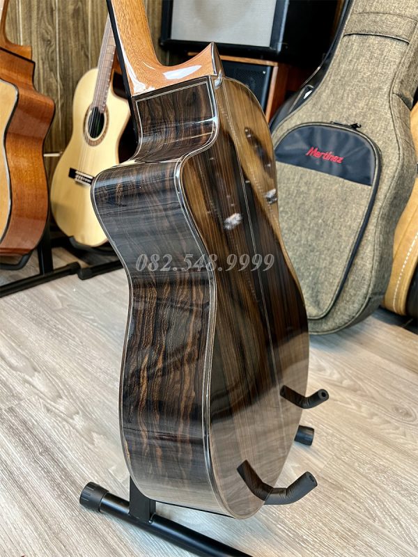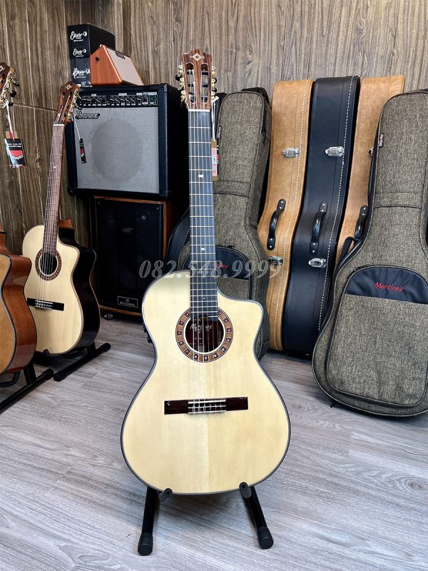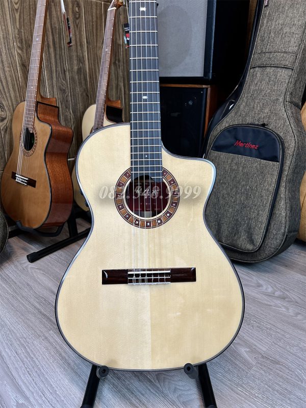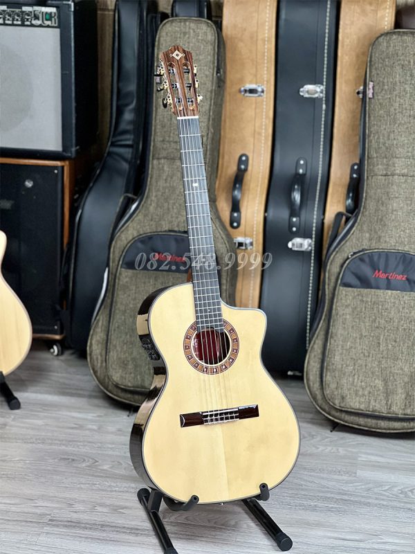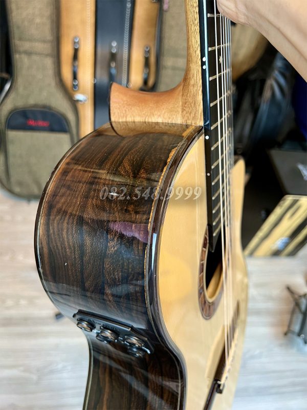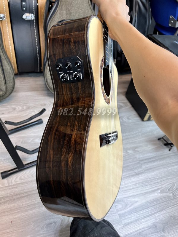 Mặt Top là gỗ Spruce, lưng và hông là gỗ Ziricote, mặt phím là gỗ Gụ, 20 phím đàn, EQ Pro S1 tích hợp hiệu ứng khi chơi trên âm mộc bao gồm reverb (độ vang), delay (độ ngân trễ), Chorus.. rất đương đại và nổi trội