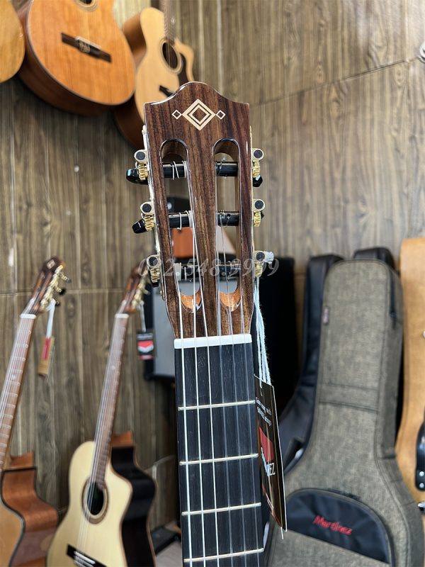 Đàn Guitar Martinez MP14-Ziricote artist thuộc dòng sản phẩm Crossover của hãng hay còn có tên gọi là Semi Classic (bán cổ điển) với bản cần 48mm và mặt phím bum bê rất thích hợp cho những người có bàn tay nhỏ, hoặc chơi đệm hát, fingerstyle