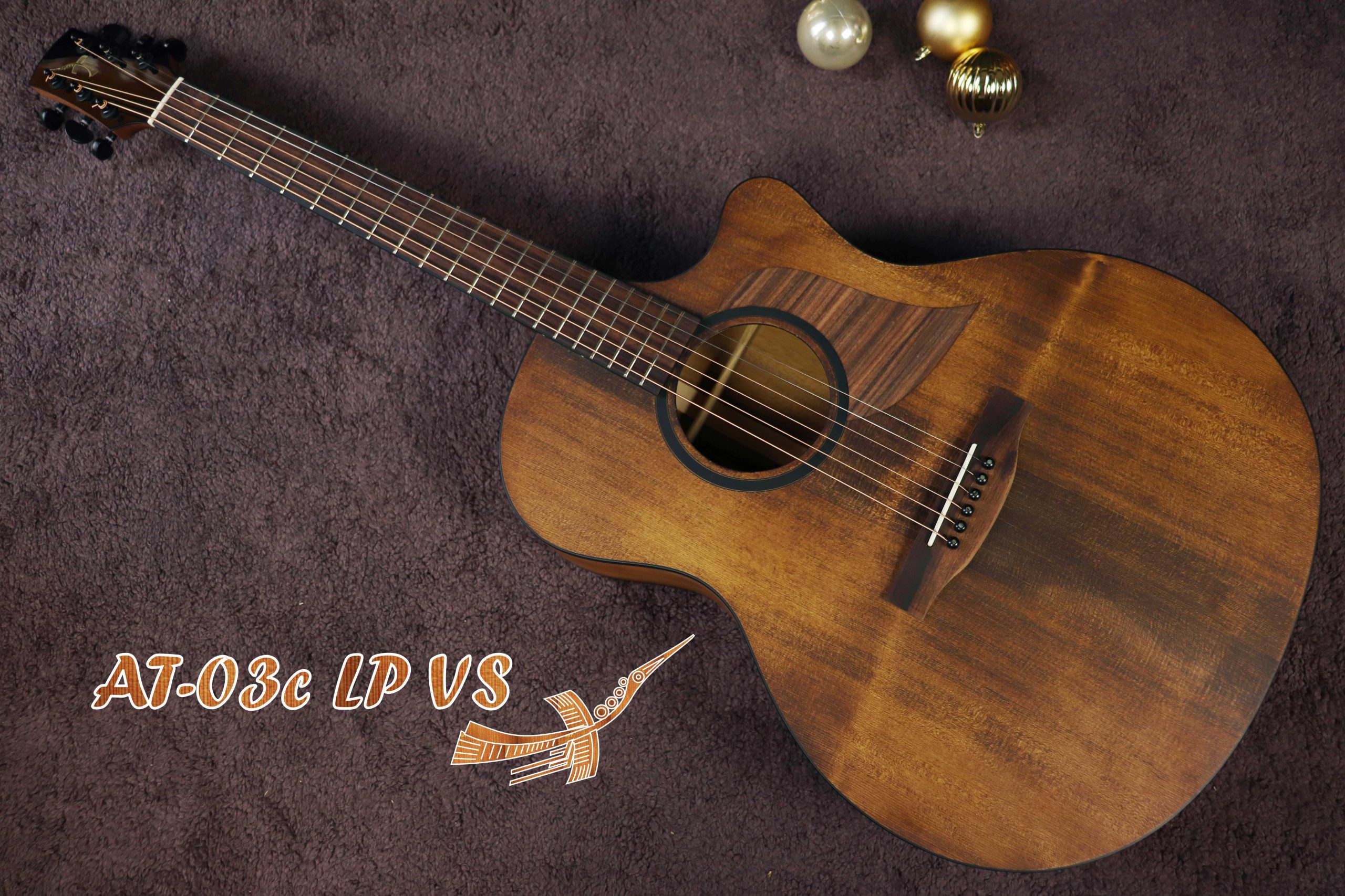 Ở phiên bản AT-03C LP VS này, mặt top đàn được làm từ gỗ thông Sitka Spruce, lưng hông làm từ KOA, Chất gỗ nhẹ, cứng, nhưng có thể uốn cong.