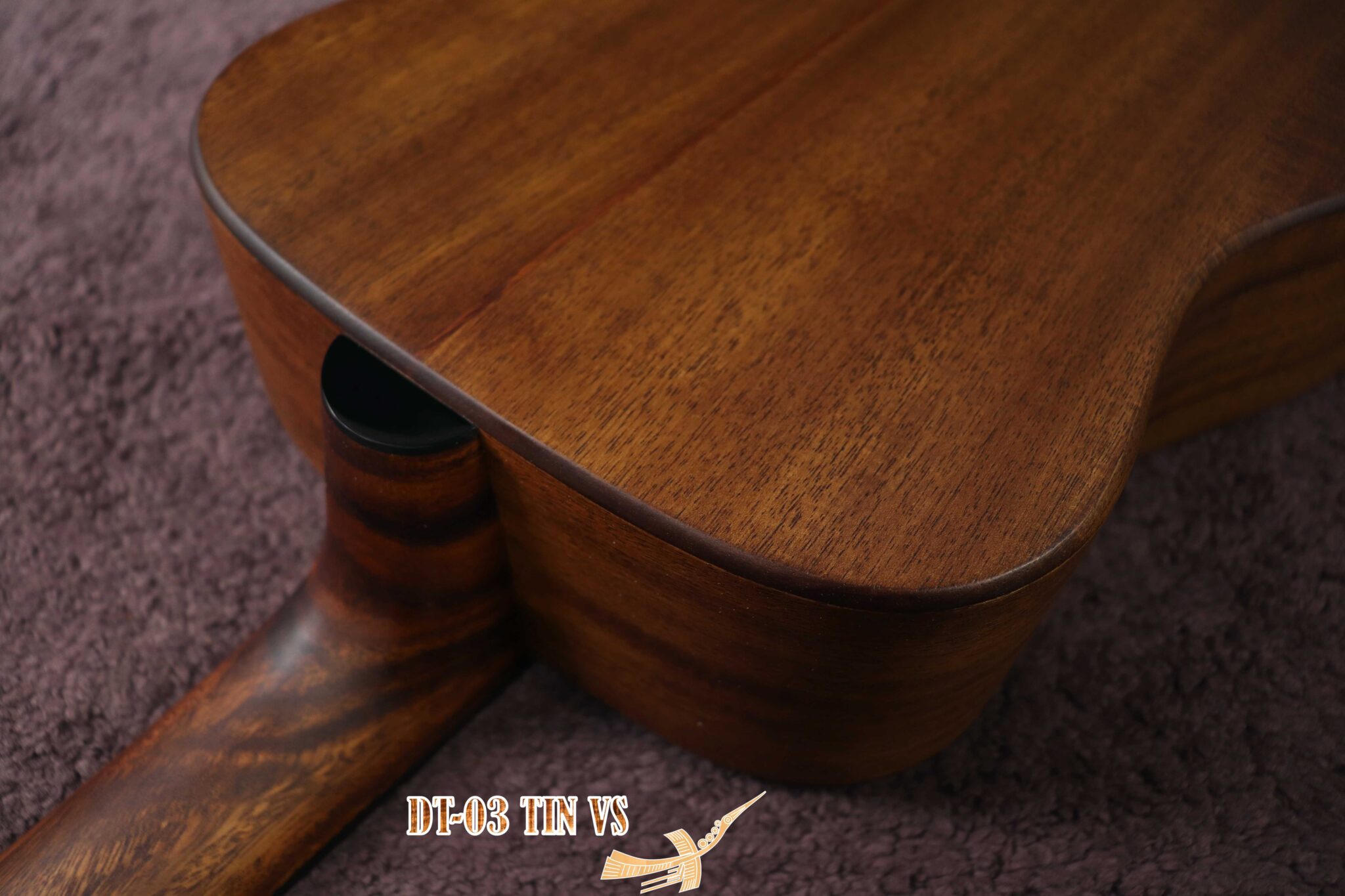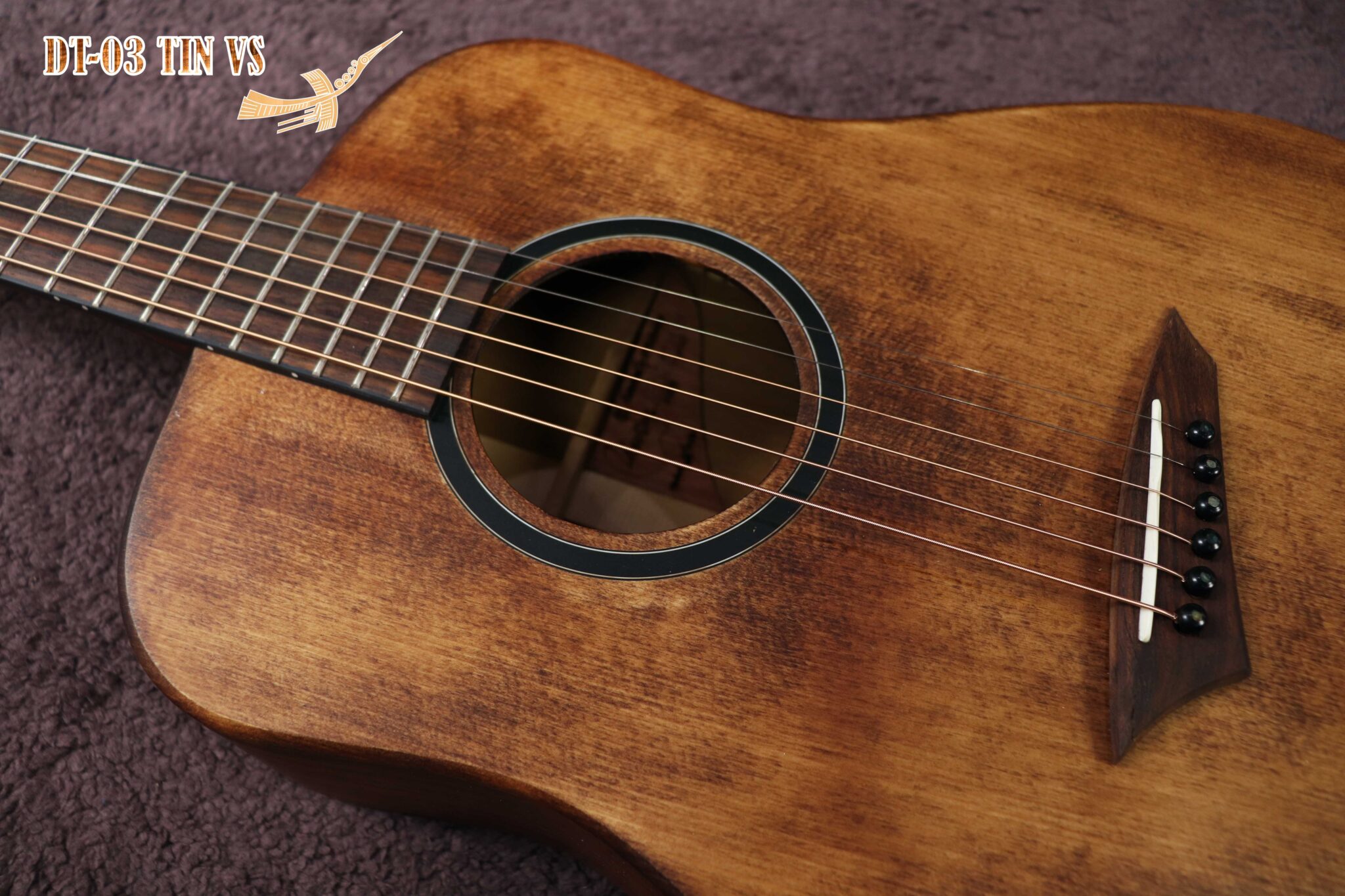 Ở phiên bản DT-03 TIN này, mặt top đàn được làm từ gỗ thông Sitka Spruce, lưng hông làm từ KOA, Chất gỗ nhẹ, cứng, nhưng có thể uốn cong.